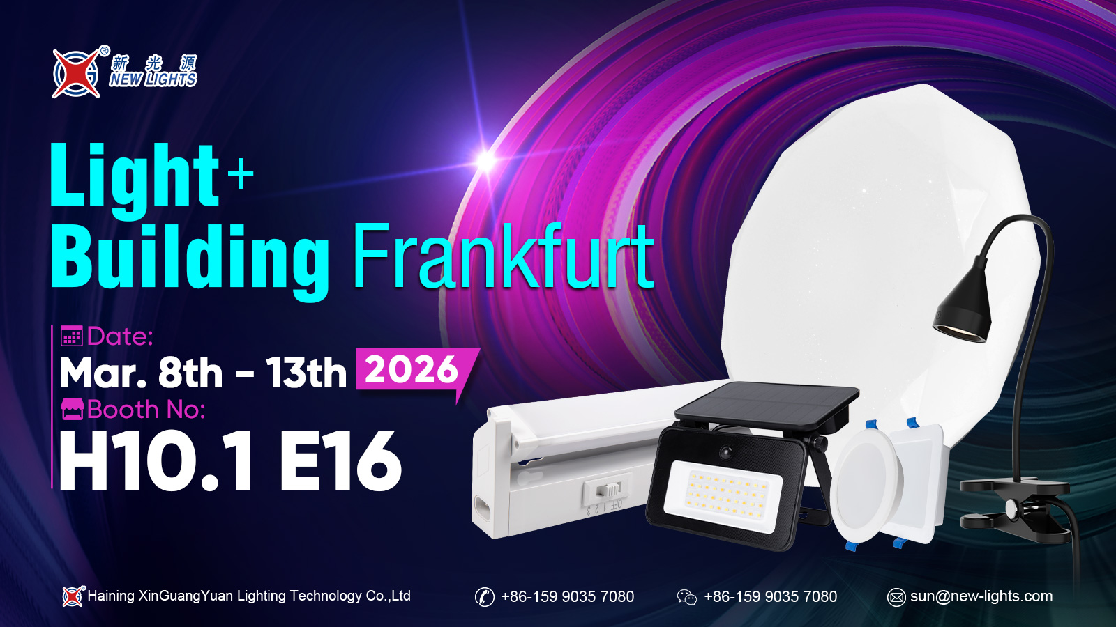 Haining Xin Guang Yuan Lighting Technology Co., Ltd vil delta på den internasjonale lysutstillingen i Frankfurt, Tyskland, fra kl. 8. mars til 13. mars 2026 . Selskapet vil stille ut kl Stand H10.1 E16 . Under utstillingen vil Haining Xin Guang Yuan Lighting Technology Co., Ltd vise frem sine nyeste belysningsteknologier og produktløsninger, og engasjere seg i dybdeutveksling med bransjefolk og partnere fra hele verden. Besøkende er velkommen til å stikke innom standen for diskusjoner og samarbeidsmuligheter.